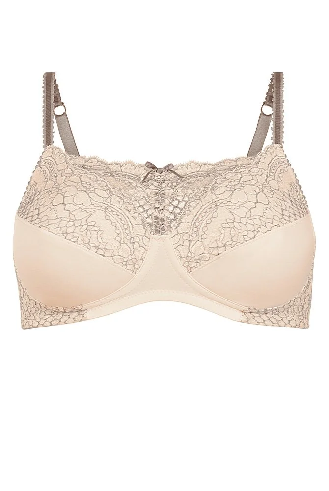Prothesen-BH Alina überzeugt ohne Bügel, mit zarter, femininer Spitze in wunderschöner zarter Kombination harmonierender Farben. Der subtile zweifarbige Effekt an den oberen Cups, dem Ausschnitt und den Seiten verleiht BH Alina eine verführerische Note.