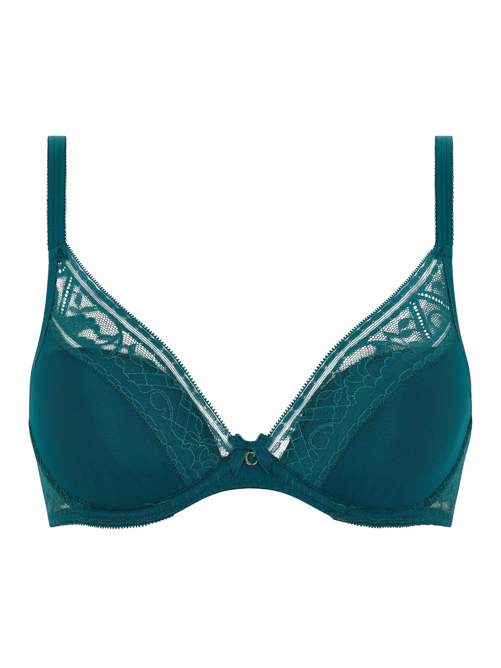 Tief ausgeschnittener T-Shirt-BH von Chantelle mit elegantem Überzug aus Leavers Spitze für ein angehobenes Büstenergebnis, garantiert einen sicheren Halt.