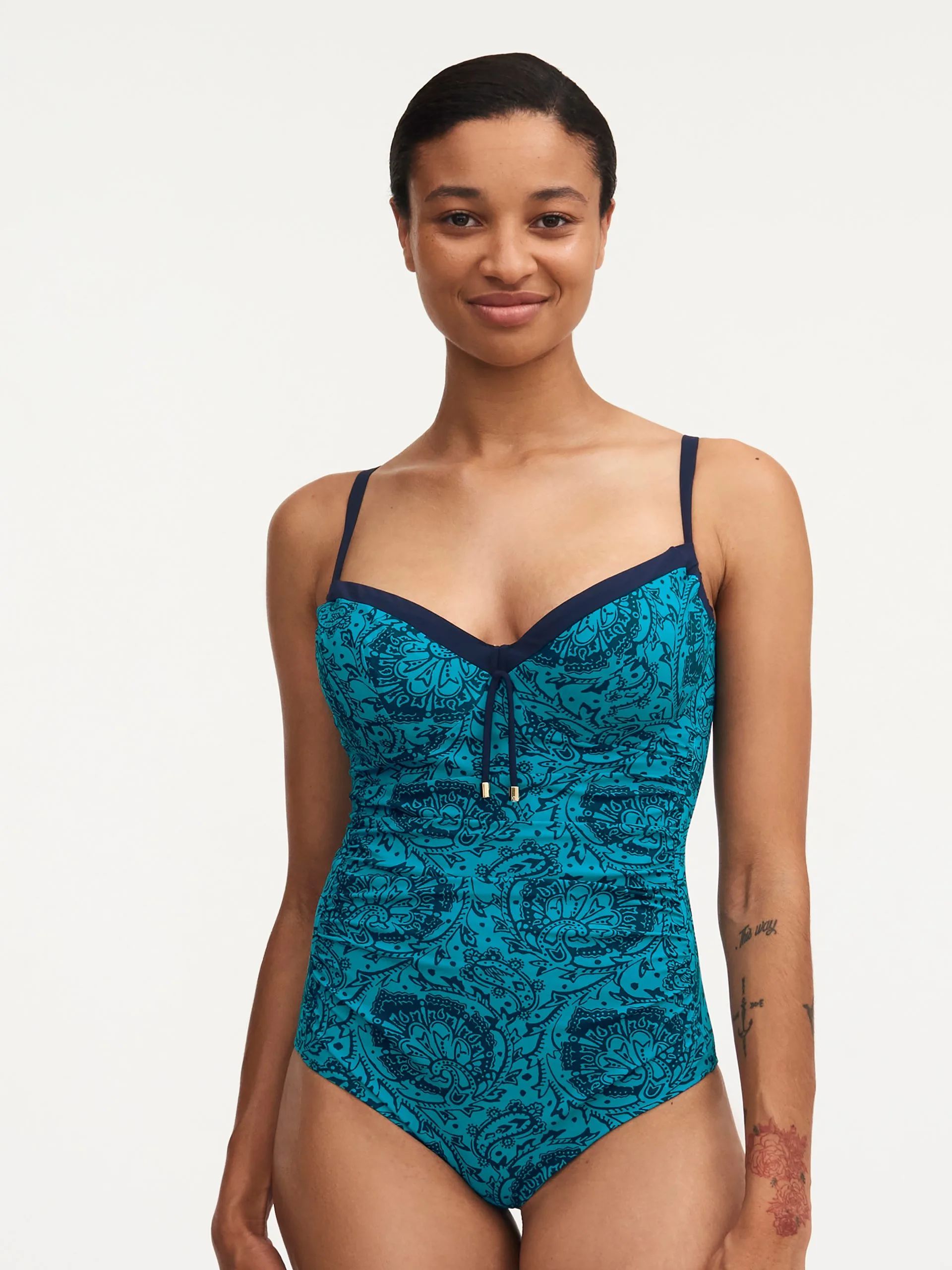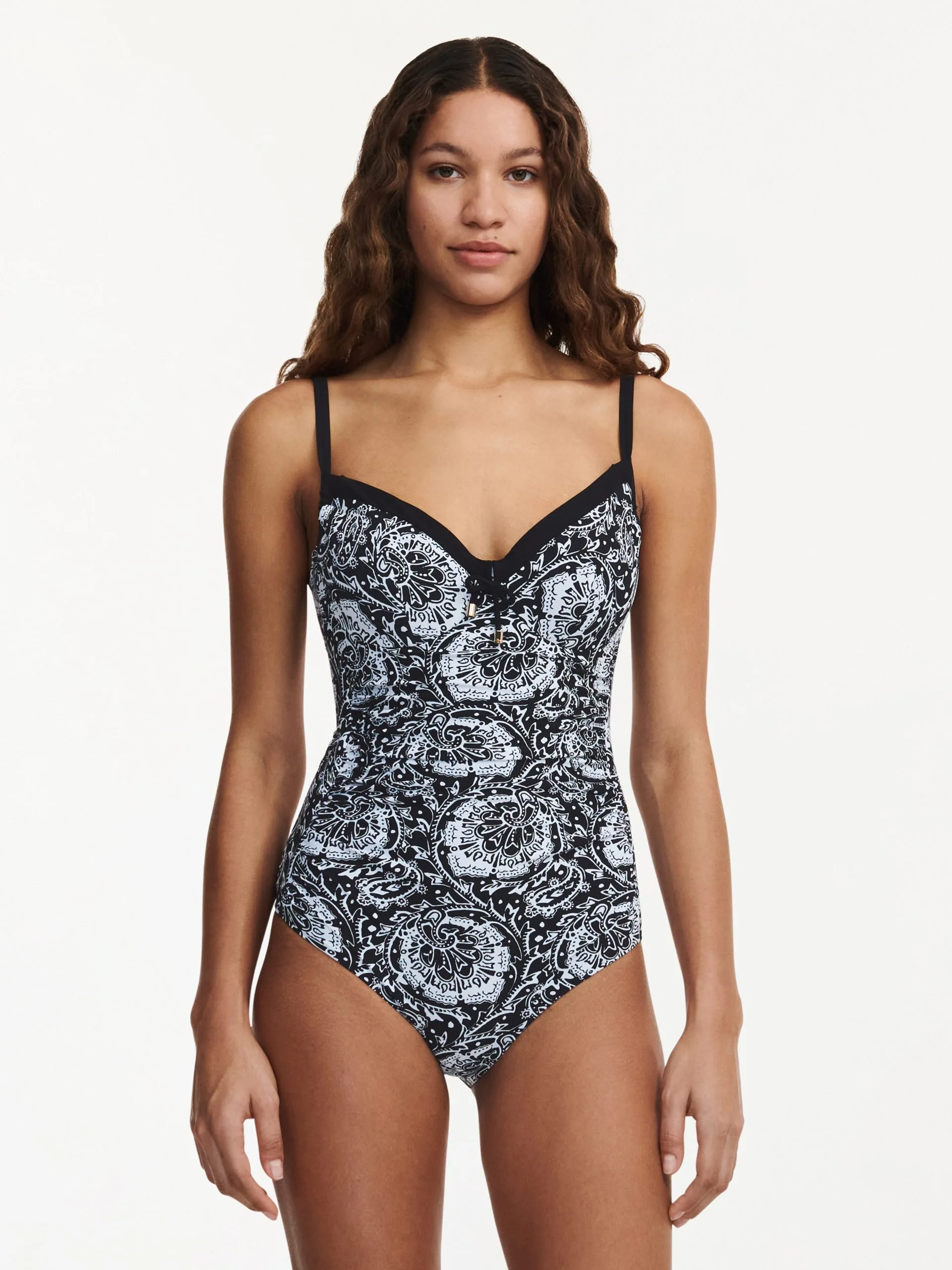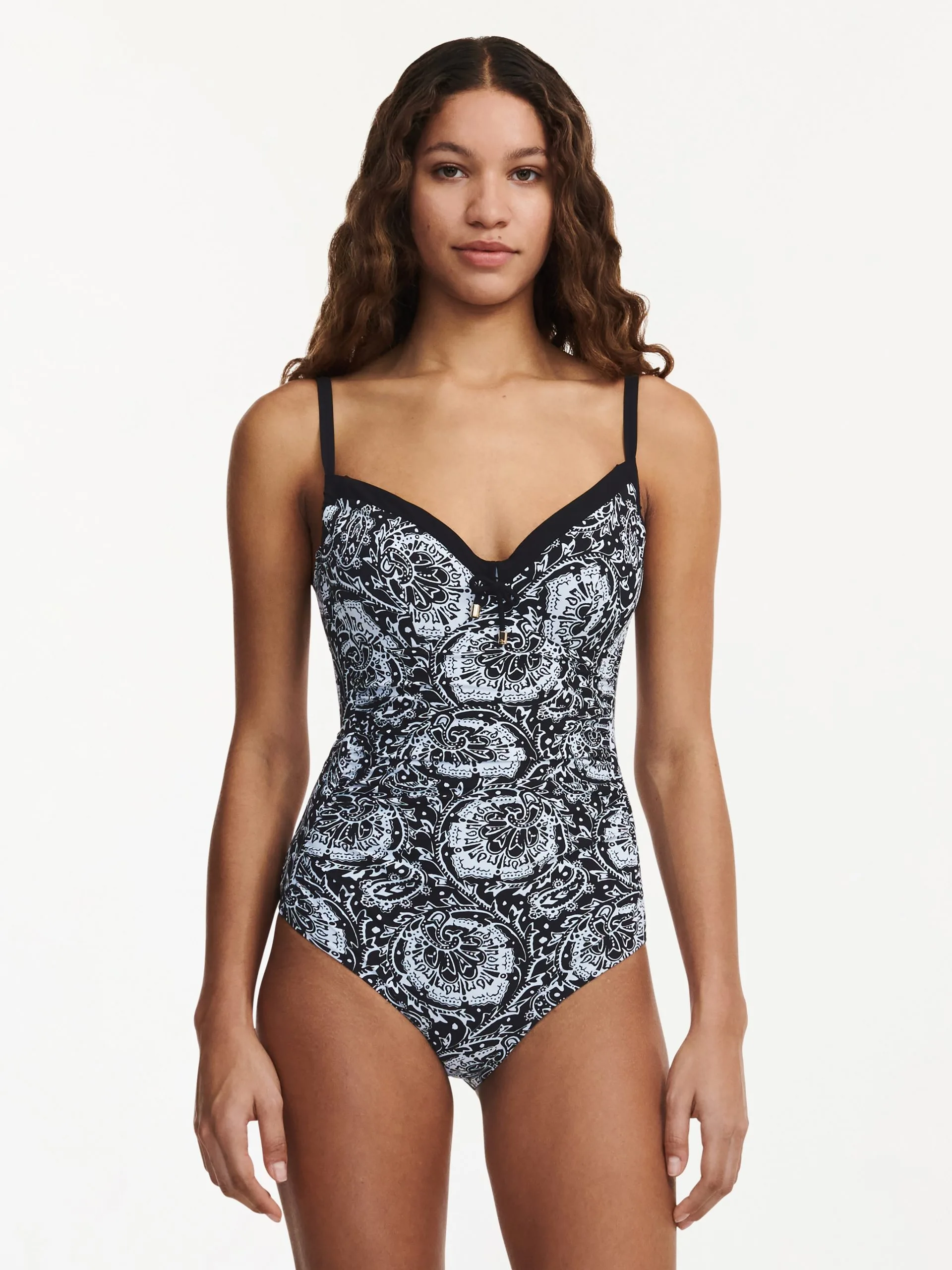 Klassischer bedeckender Badeanzug von Chantelle mit einem gerundetem und zentriertem Büsteneffekt und verstellbaren Seitenteilen, um die Körbchen anzupassen.