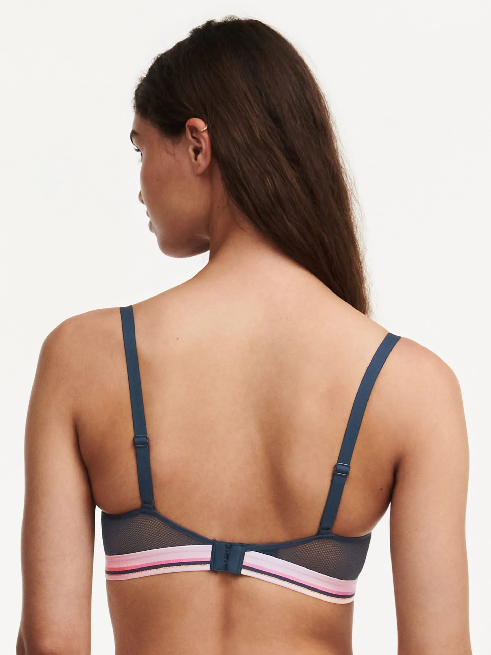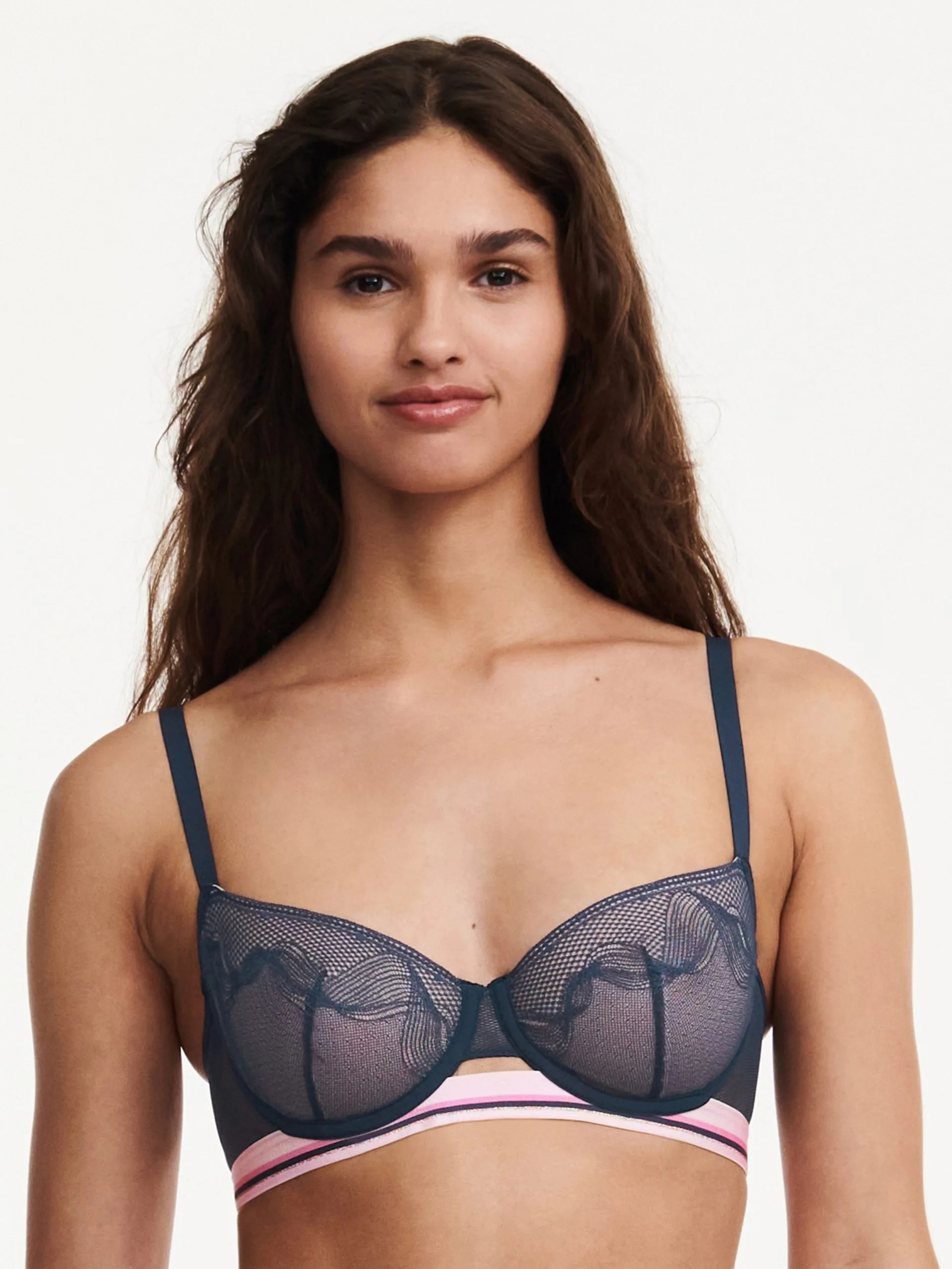 Außenträger-BH von Passionata halber Körbchengröße für eine gehobene Brust und ein verführerisches Dekolleté. Das Körbchen besteht aus Spitze und der BH hat ein elastisches Unterbrustband mit geometrischen und mehrfarbigen Linien.