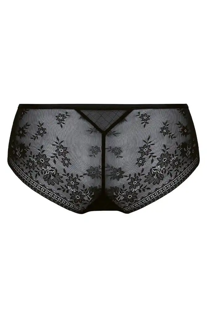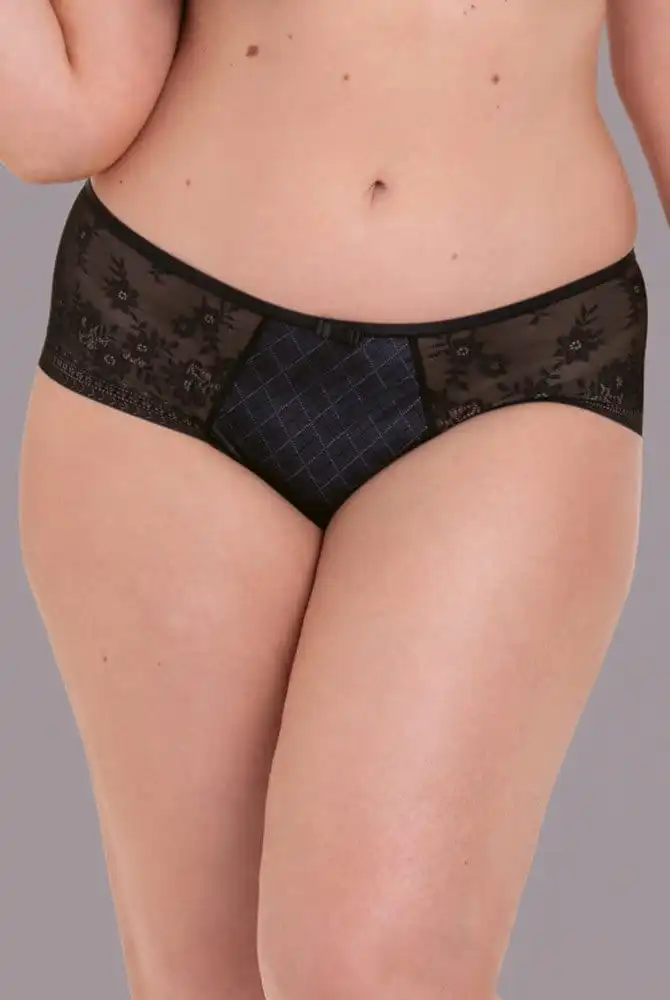 Modern mit femininer Spitze überzeugt Hipster Rosemary darüber hinaus mit seinem perfekten Tragekomfort und der hochwertigen Qualität. Im Vorderteil ist das Design verspielt mit blickdicht hinterlegtem Karo Allover. Transparente Spitze rückseitig und an den Seiten sorgt für sinnliche Leichtigkeit und schmiegt sich angenehm an Ihre Haut. Der flache Spitzenabschluss schneidet nicht ein und zeichnet sich nicht unter enger Kleidung ab. Der Beinausschnitt ist moderat hoch. Der Bund ist komfortabel hüfthoch geschnitten. Hipster Rosemary ist die perfekte Ergänzung der Rosemary BHs.