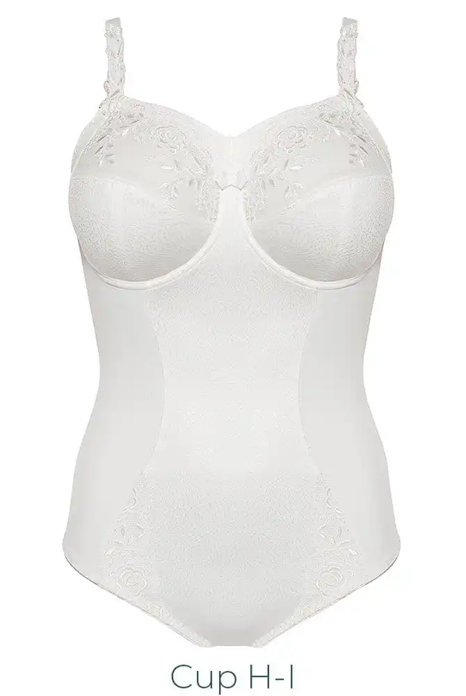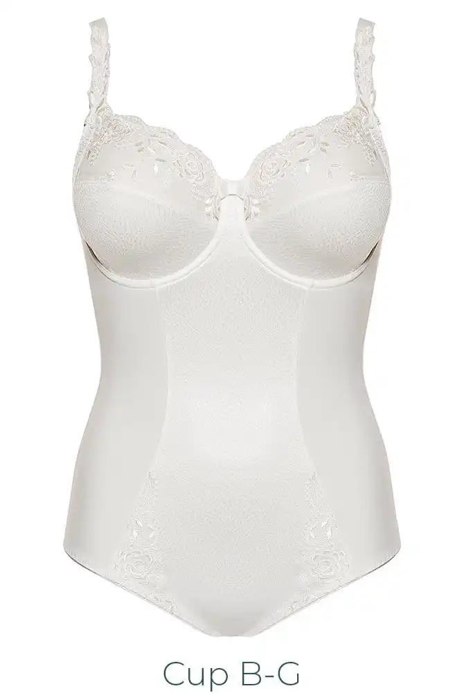 Body für große Größen sorgt durch dreigeteiltes Cup und eingearbeitete Bügel für ein formvollendetes Dekolleté. Die große Büste findet optimalen Halt und die hochwertige Schnürlistickerei mit Blatt- und Blütenmotiven im oberen Cup des Body Ella besticht durch reizvollen Charme. Body für die starke Brust aus der Ulla-Kollektion wird durch schöne Ausarbeitung zu einem edlen Darunter.
